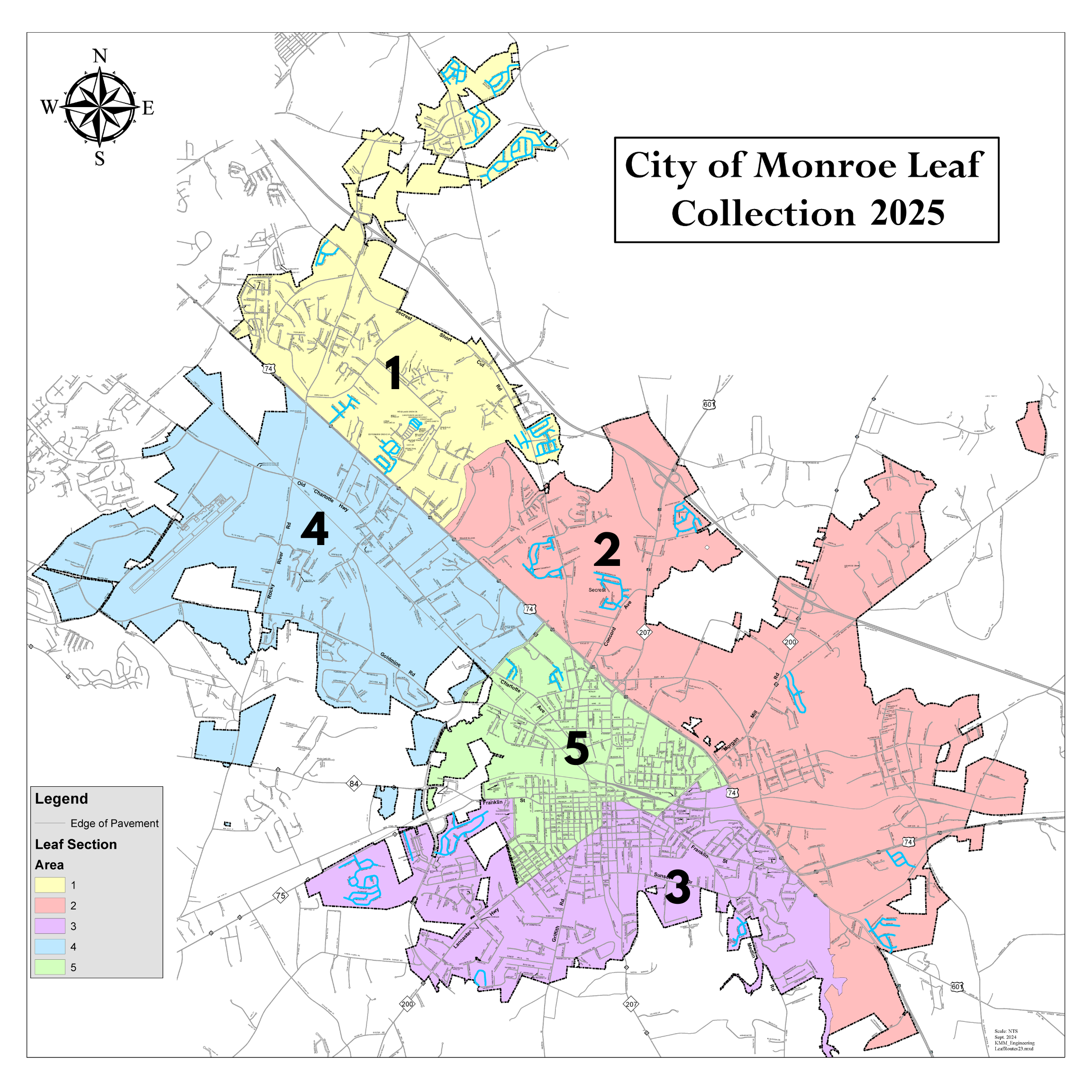 • The City of Monroe collects leaves that are piled behind the curbs of homes within the City limits from November to February. The City is divided into five sections for leaf collection. You can find your section here