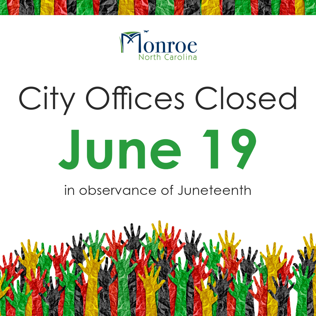The City of Monroe's administrative offices will be closed on Wednesday, June 19, in observance of Juneteenth.